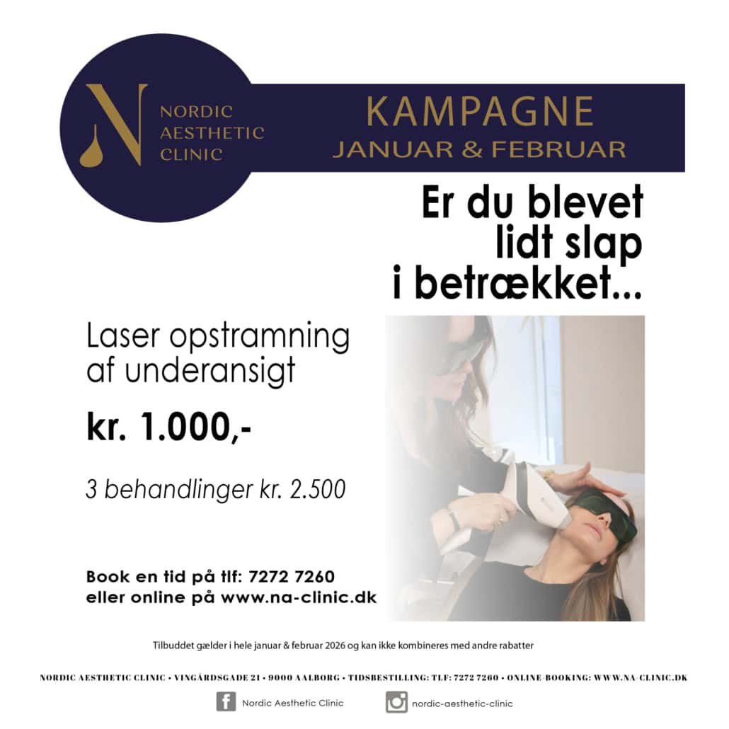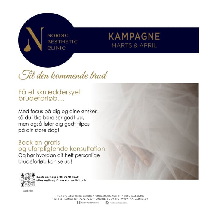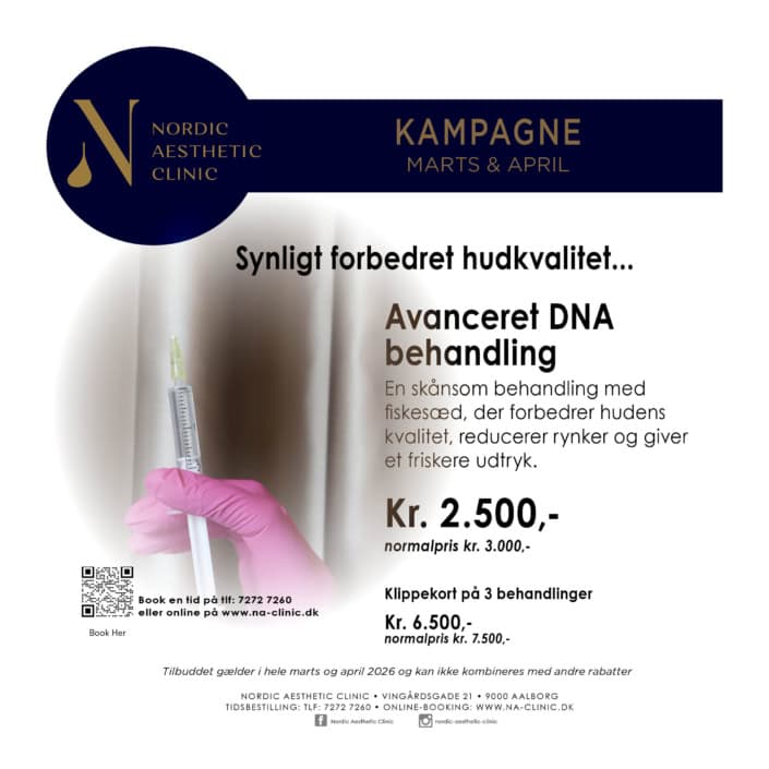 NORDIC er en kosmetisk klinik som ligger i hjertet af Aalborg, og vi er stolte af at have nogle af Danmarks mest erfarne behandlere, sygeplejersker og dermatologer inden for hudterapi og kosmetiske behandlinger. Vi stræber efter at være de dygtigste til vores specialer – og vise dig personlig omsorg gennem hele dit forløb.